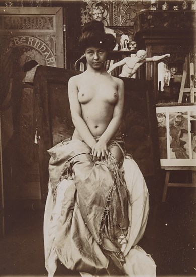model posing in mucha’s studio, rue du val de grâce, paris