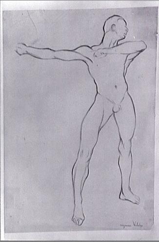 Puis en 1914, elle passe à la vitesse supérieure en le représentant sous toutes les coutures ! Lors d’un séjour en Corse, elle réalise des croquis de son compagnon dénudé au bord de l’eau :