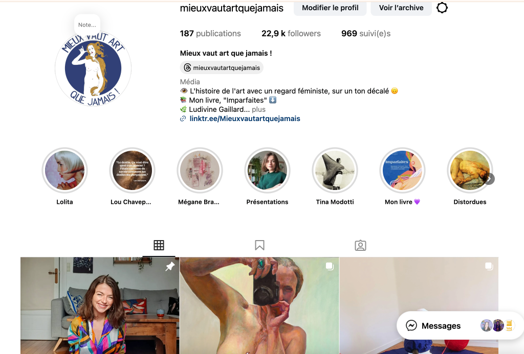 J’ai créé le blog « Mieux vaut art que jamais » il y a 8 ans pour rendre accessible l’art au plus grand nombre, avec une touche d’humour et un regard féministe !